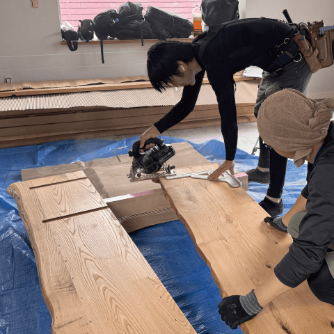 田中建築は「Hidakuma / FabCafe Hida」の創造的な企画や活動に協力し、木材加工の技術的な支援を行っています。