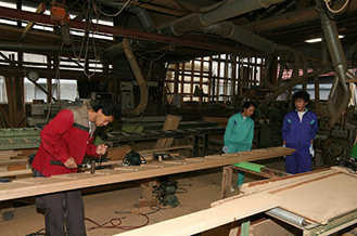 床板張りと研磨の体験